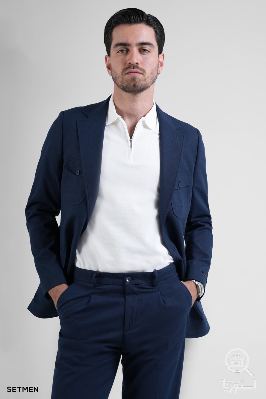 کت و شلوار مردانه دو تکه یقه بلیزر تک دکمه