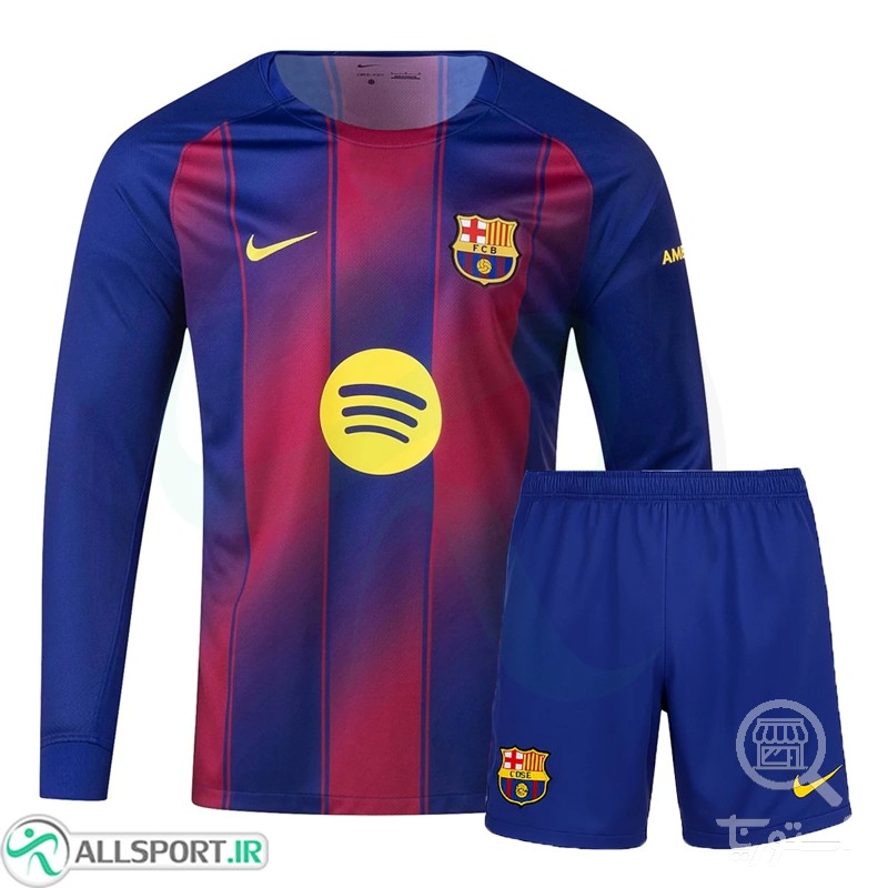 لباس شورت بارسلونا آستین بلند Barcelona Home Kit 2025-26
