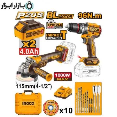 ست کمبو شامل دریل شارژی و مینی فرز شارژی 20 ولت اینکو مدل COSLI241298