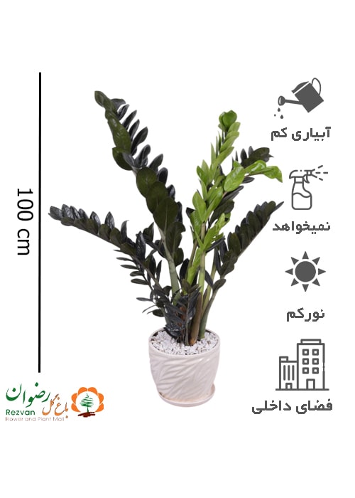 زامیفولیا سوپر بلک با گلدان سرامیکی برگی سفید 3 کد BZZ28