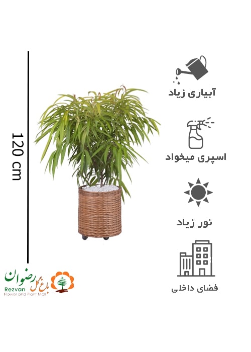 گیاه آمستل طلایی با گلدان حصیری ارتفاع 120 الی 130 FB14