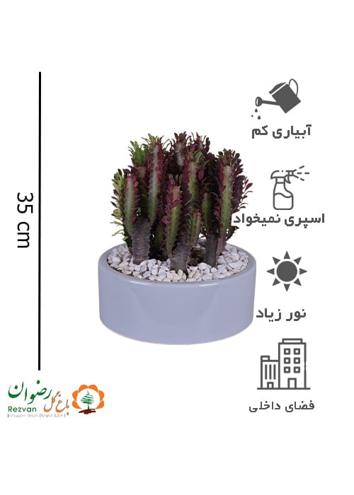 گیاه افوربیا تریگونا قرمز به همراه گلدان سرامیکی بنسایی طوسی روشن کد ET7