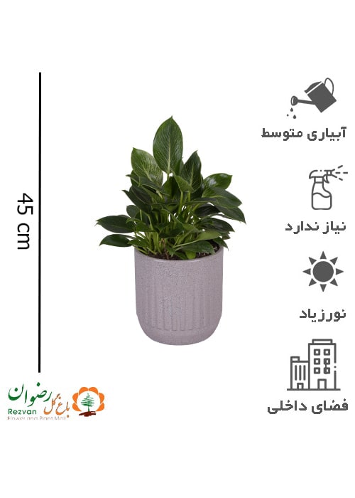 گیاه فیلودندرون بیرکین به همراه گلدان چرمی گرانیتی سایز 3 کد PB4