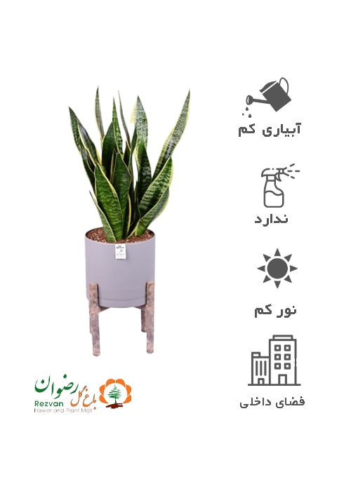 گیاه سانسوریا کرواتی با گلدان مهرنی طوسی 20 به همراه پایه st2