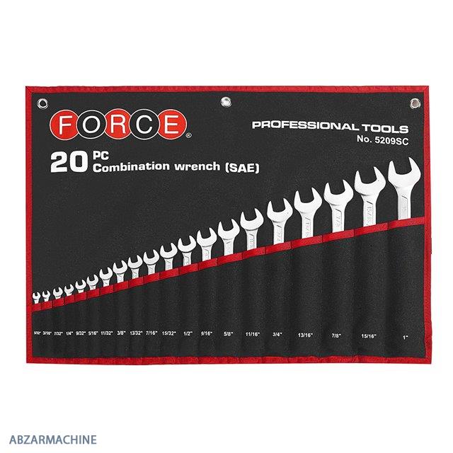 ست آچار اینچی یکسر تخت یکسر رینگ کاور دار 20 عددی FORCE مدل 5209SC