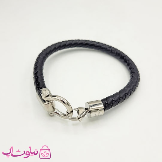 دستبند امگا چرم مشکی با قفل نقره ای