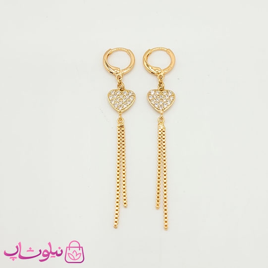 گوشواره آویز ژوپینگ مدل قلب نگیندار کد 1296