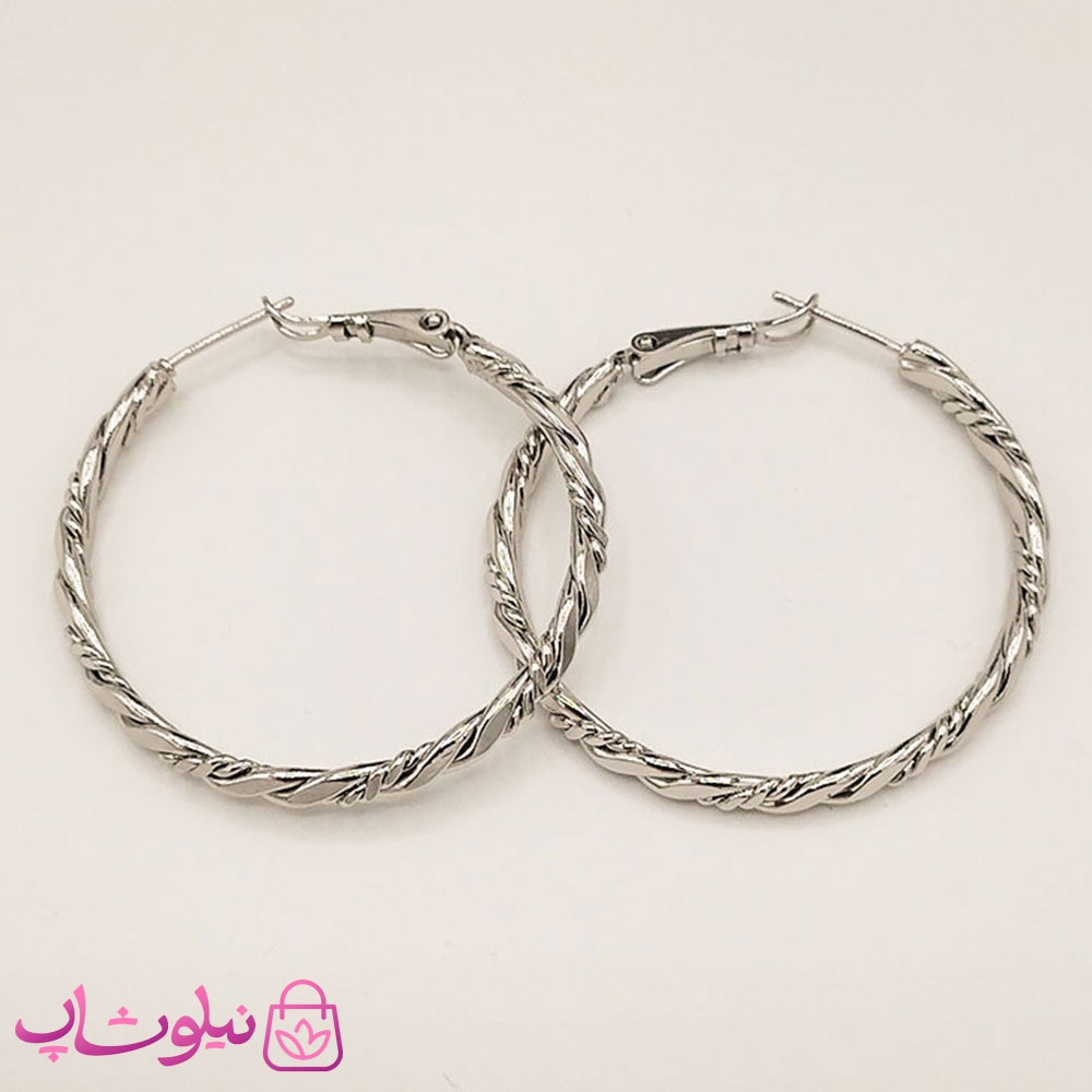 گوشواره زنانه حلقه ای بزرگ ژوپینگ نقره ای
