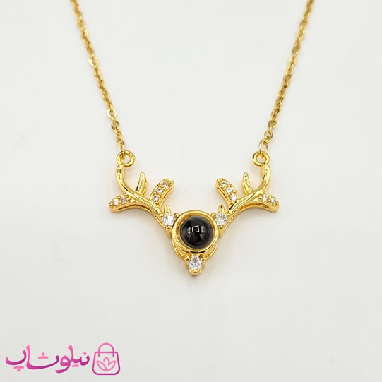 گردنبند دوستت دارم به صد زبان طرح شاخ گوزن طلایی