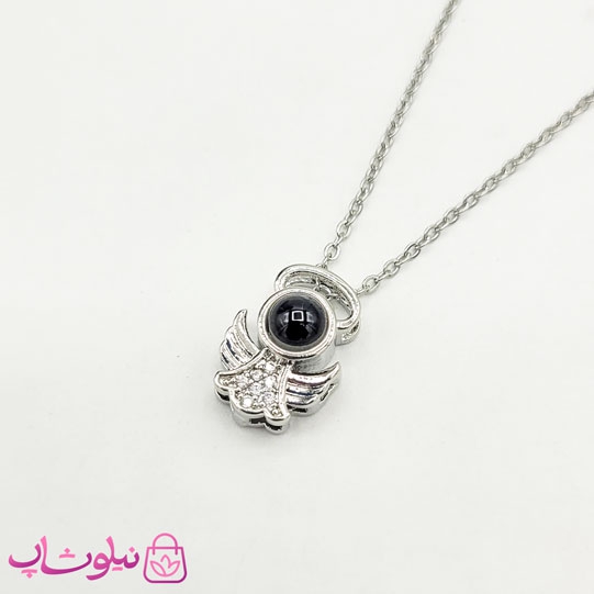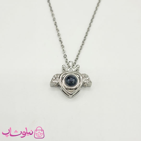گردنبند دوستت دارم به صد زبان مدل قلب بالدار نقره ای