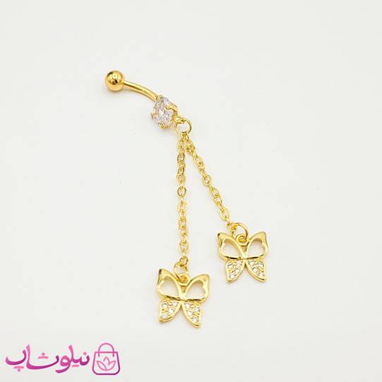 پیرسینگ ناف آویز بلند طرح پروانه طلایی کد 1091-2