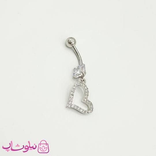 پیرسینگ ناف نقره ای با آویز قلب کد 1091