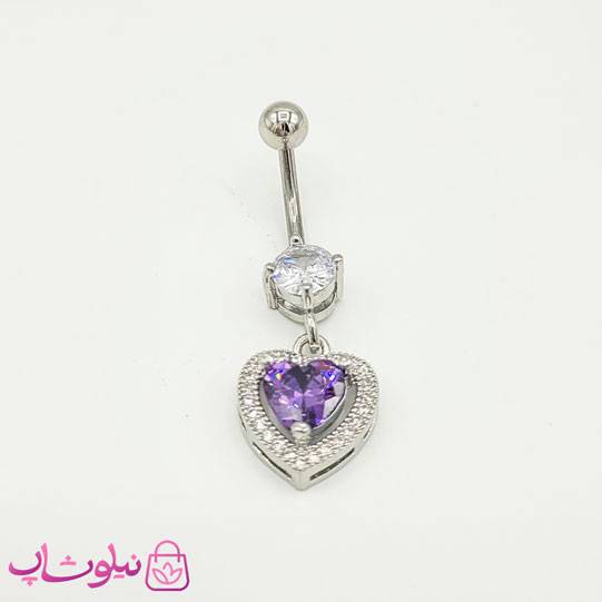 پیرسینگ ناف مدل قلب با کریستال بنفش کد 109-3