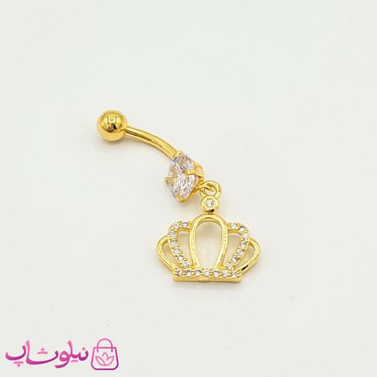 پیرسینگ ناف با آویز تاج طلایی کد 1091
