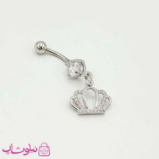 پیرسینگ ناف با آویز تاج نقره ای کد 1091-1