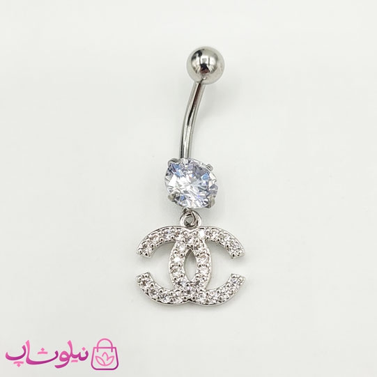 پیرسینگ ناف آویزدار مدل kiss نقره ای کد 1091-3