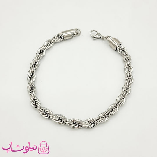 دستبند مردانه طنابی استیل نقره ای کد 495