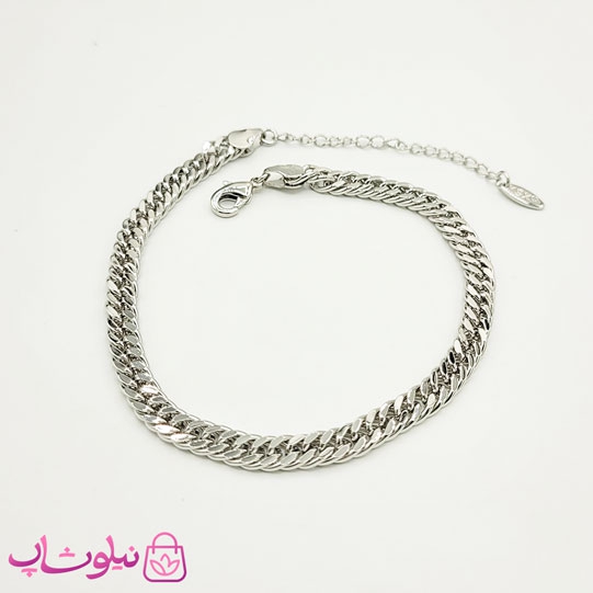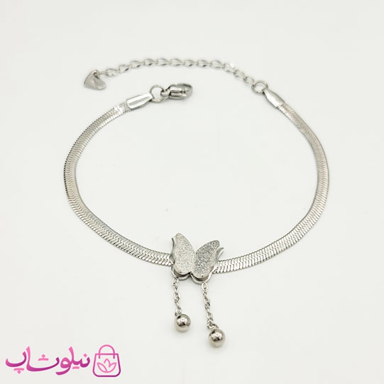 دستبند زنانه با زنجیر ماری طرح پروانه نقره ای کد 895