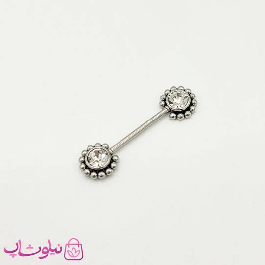 پیرسینگ سینه نگیندار نقره ای کد 892