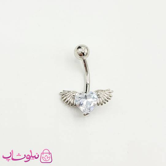 پیرسینگ ناف مدل قلب بالدار نقره ای کد 791