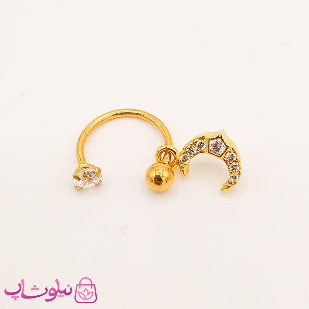 پیرسینگ اسمایل استیل طرح ماه و ستاره طلایی