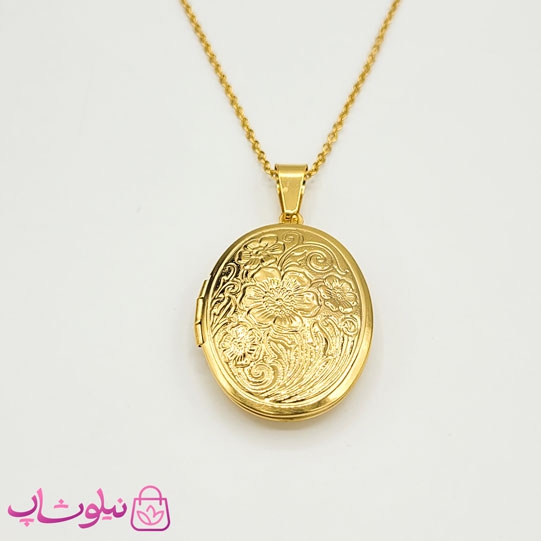 گردنبند لاکت بیضی طرح گل طلایی