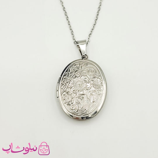 گردنبند لاکت بیضی طرح گل نقره ای