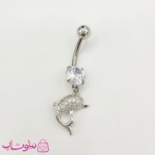 پیرسینگ ناف آویزدار طرح دلفین نقره ای