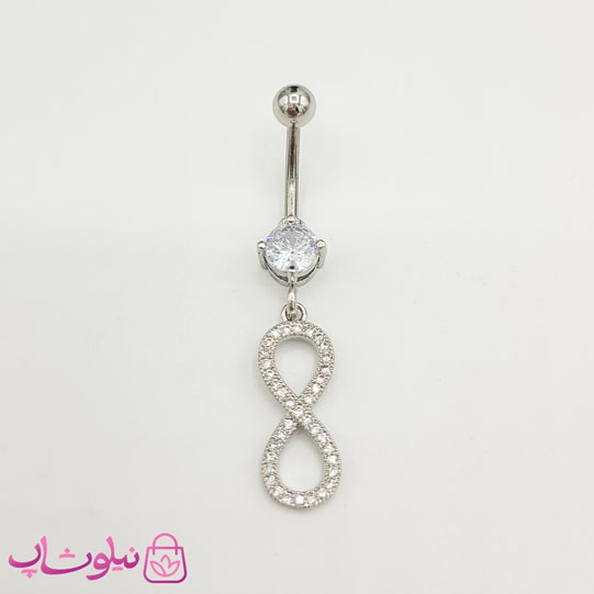 پیرسینگ ناف آویزدار طرح بی نهایت نقره ای
