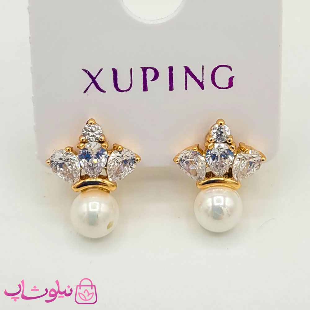 گوشواره زنانه مرواریدی ژوپینگ طرح تاج کد 1940-2