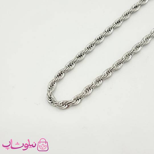 زنجیر طنابی زنانه نقره ای استیل ضخیم 45 سانت کد 691