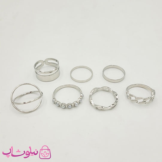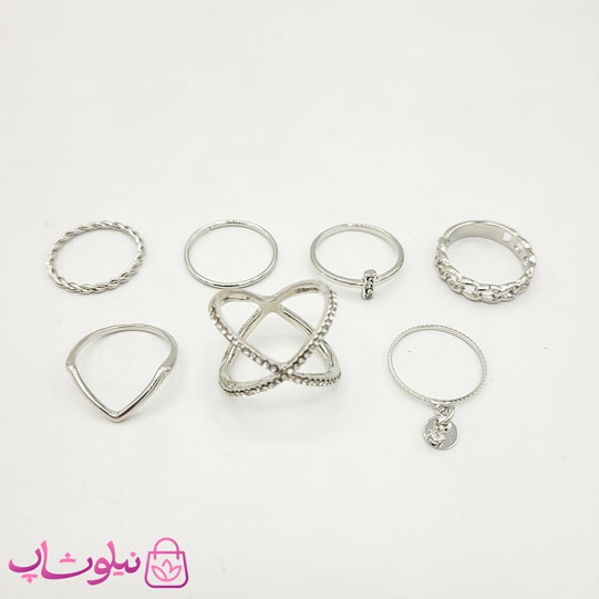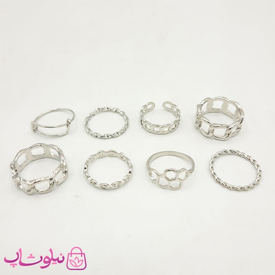 پک انگشتر دخترانه طرح کارتیه 8 عددی نقره ای