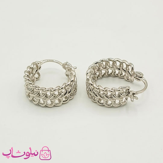 گوشواره حلقه ای ژوپینگ طرحدار نقره ای کد 721-1