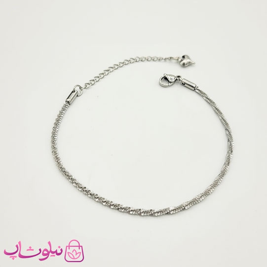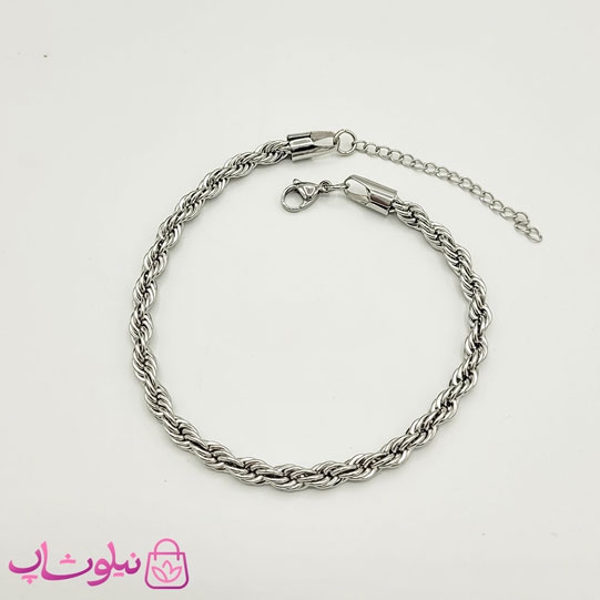 پابند زنانه طنابی استیل نقره ای ضخیم کد 495