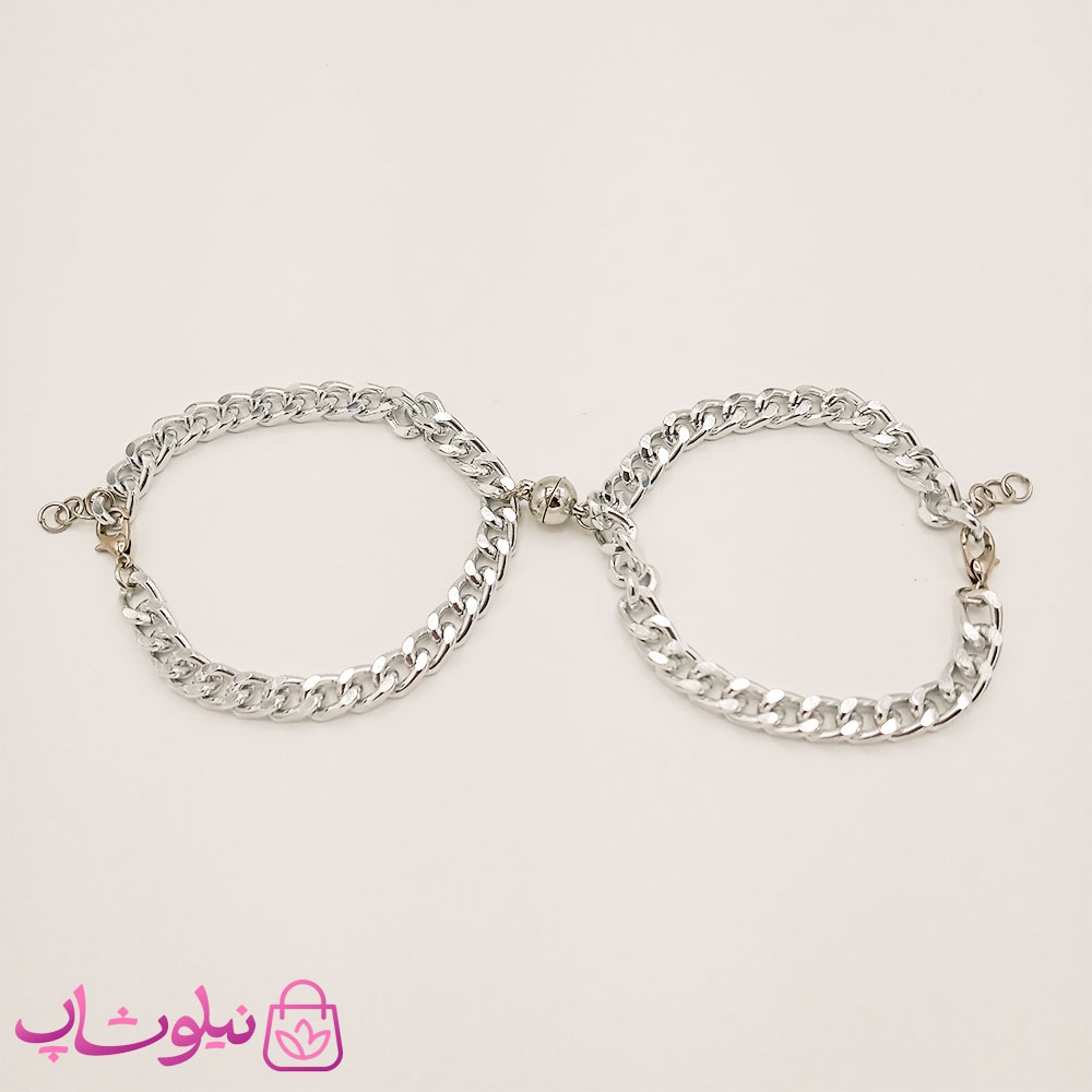 دستبند ست عاشقانه مگنتی نقره ای
