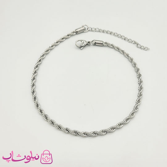 پابند زنانه طنابی مدل استیل نازک نقره ای کد 349