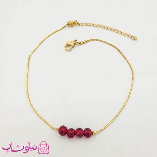 دستبند مهره ای سه لاین با مروارید و سنگ آبی