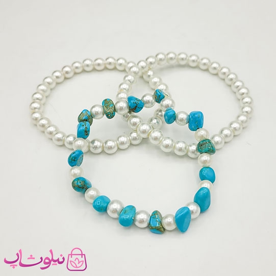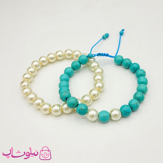 دستبند دو لاین با مهره های مرواریدی و آبی