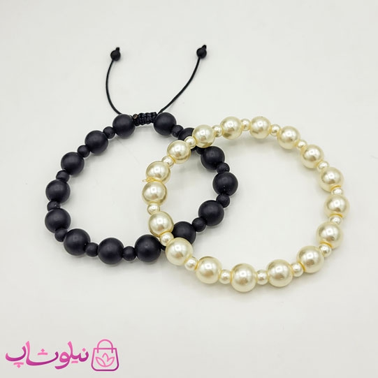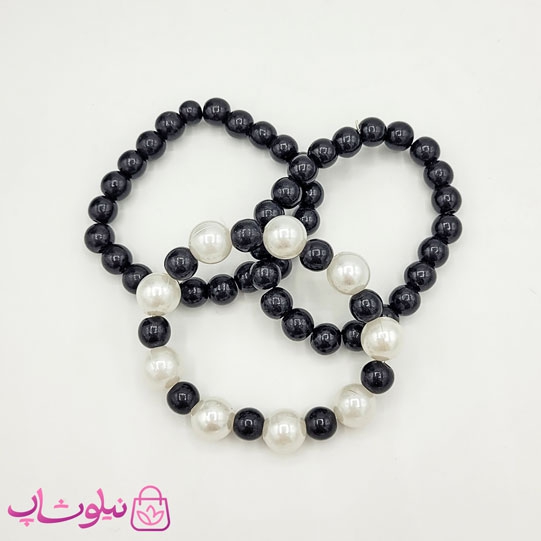 دستبند مهره ای دو ردیفه مرواریدی و مشکی