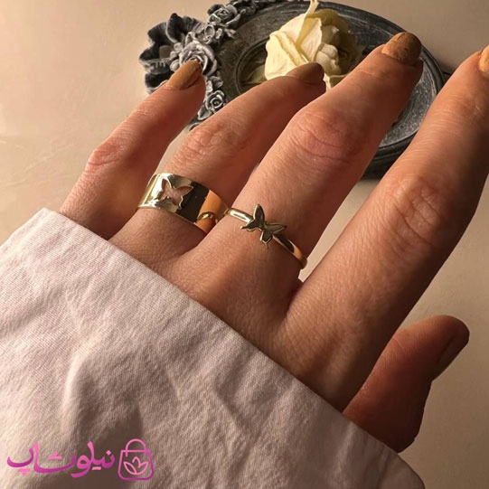 انگشتر دخترانه مکمل طرح پروانه طلایی