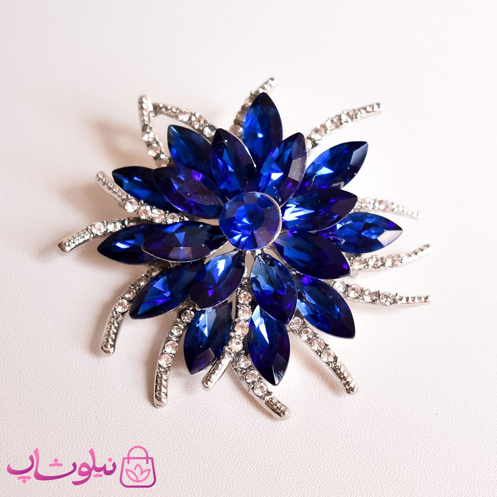 گل سینه زنانه نگین دار آبی کد 1010-1