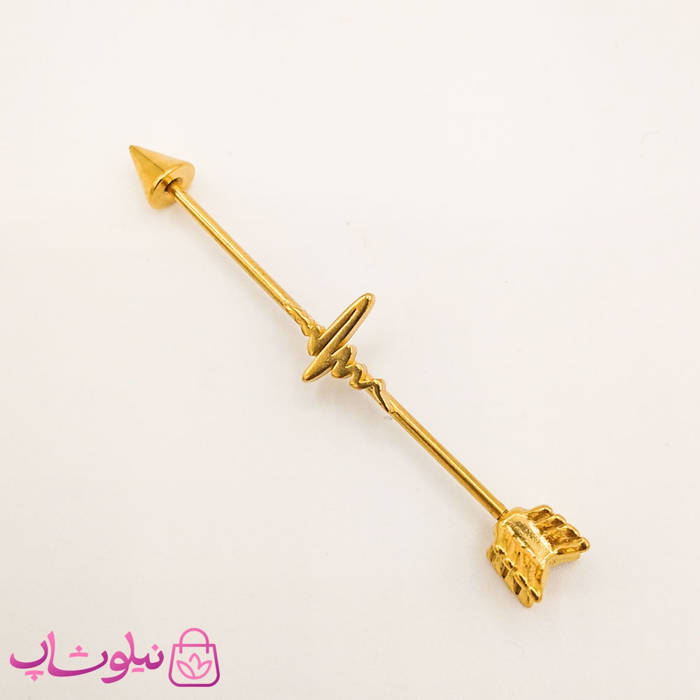 پیرسینگ گوش طرح فلش یا پیکان طلایی