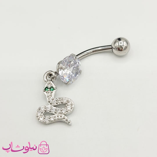 پیرسینگ ناف آویزدار طرح مار نقره ای