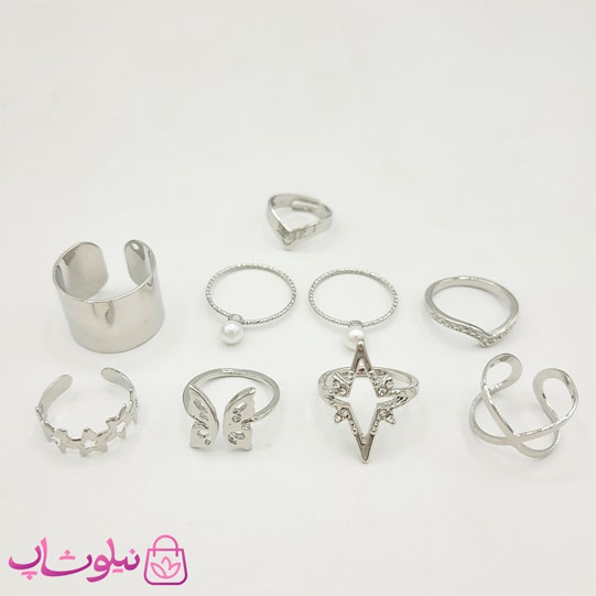 انگشتر چندتایی طرح پروانه و ستاره 8 عددی نقره ای
