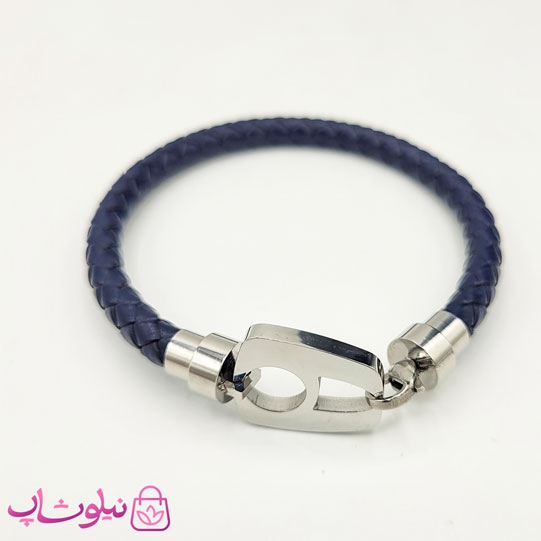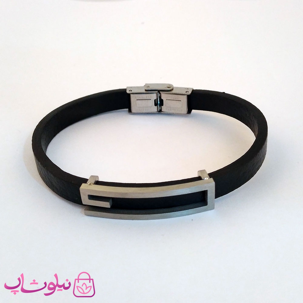 دستبند مردانه نیمانی چرم و استیل سرمه ای