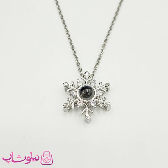 گردنبند دوستت دارم به صد زبان طرح برف نقره ای