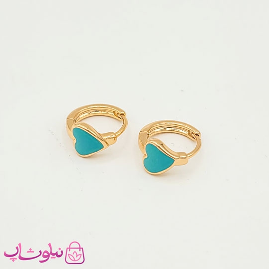 گوشواره حلقه ای ریز ژوپینگ مدل قلب آبی کد 34