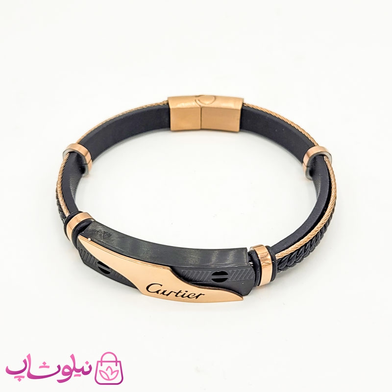 دستبند مردانه چرم و استیل کارتیه کد 1053