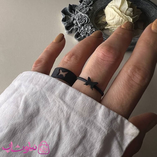 انگشتر دخترانه مکمل طرح پروانه مشکی