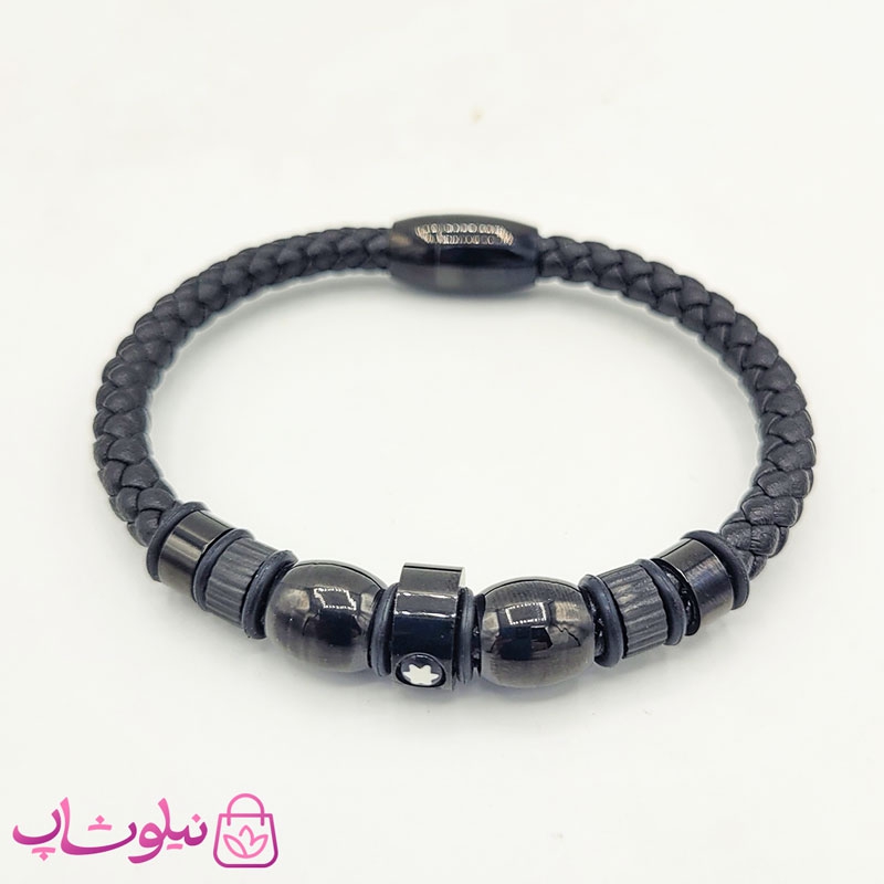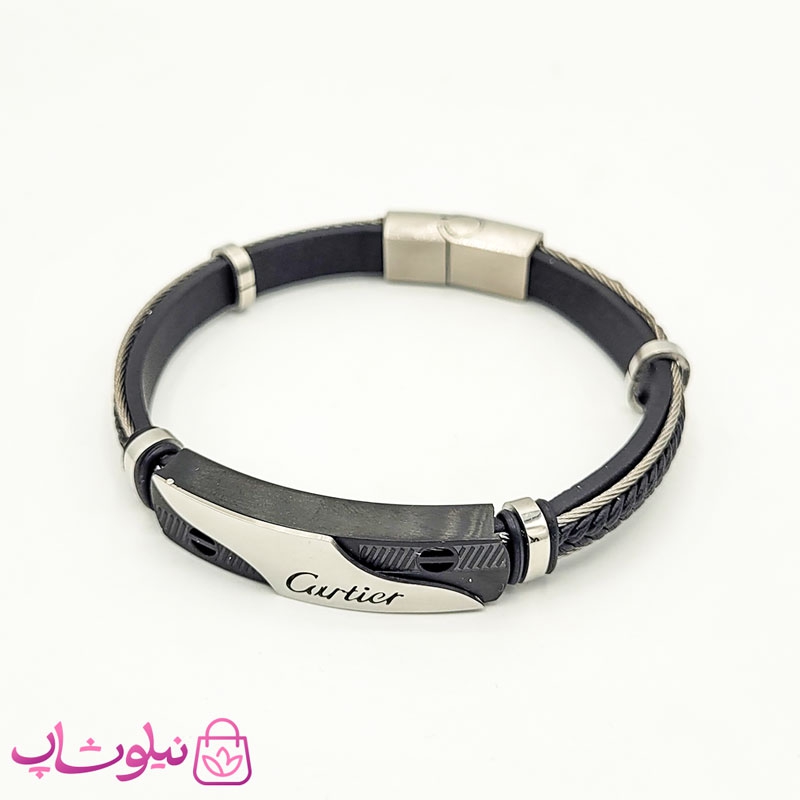 دستبند مردانه چرم و استیل کارتیه سیلور کد 1053-1